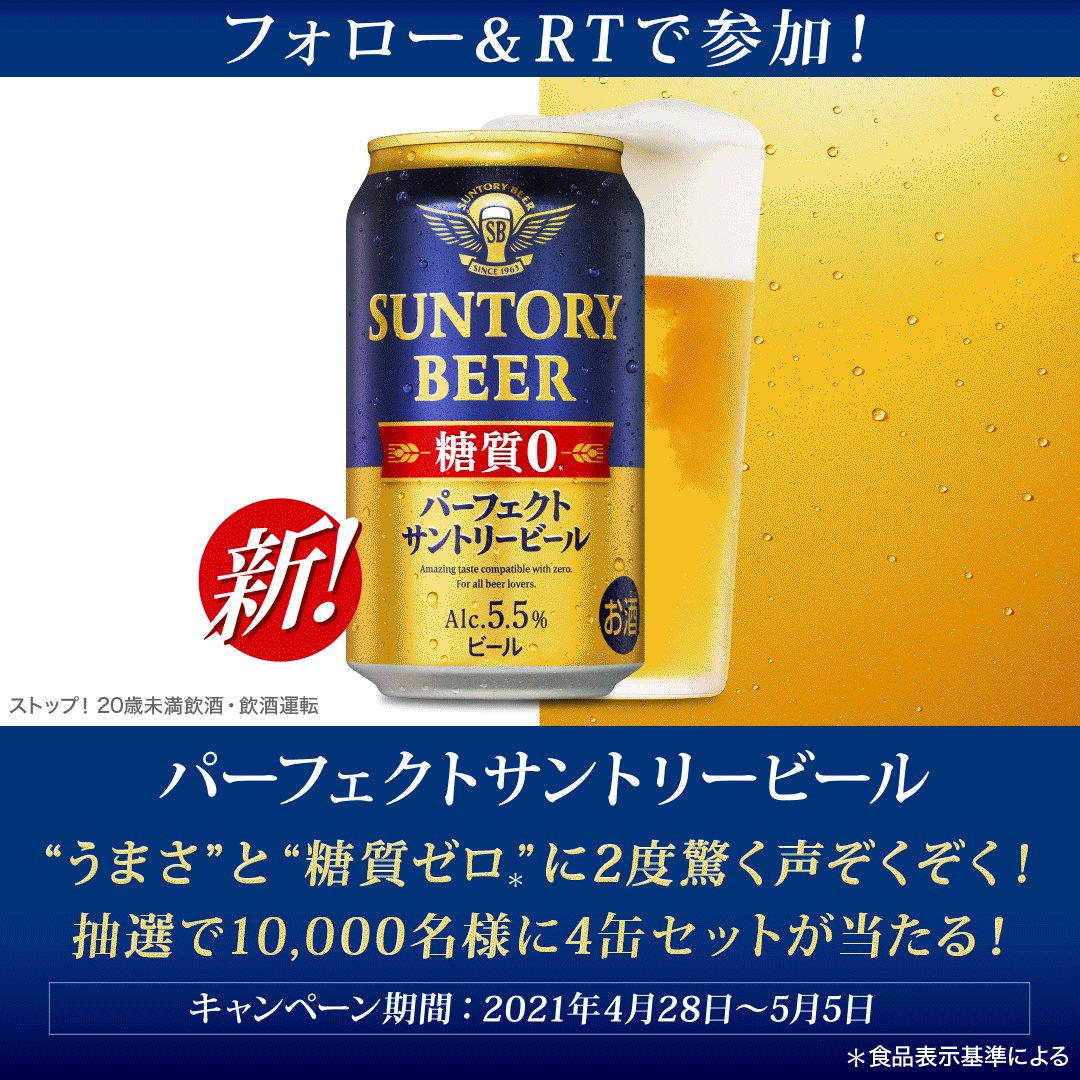 サントリー パーフェクトサントリービールで2021年春の無料オープン懸賞キャンペーンを実施中です。キャンペーン期間中にTwitterをフォローRTリツイートして応募すると、抽選で10,000名様にパーフェクトサントリービール4缶セットが当たります。