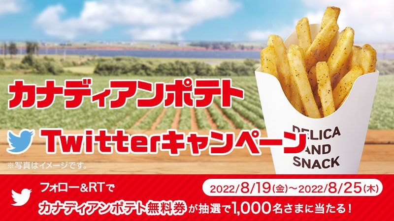 ミニストップで2022年夏のカナディアンポテト無料オープン懸賞キャンペーンを実施中です。キャンペーン期間中にミニストップ公式Twitterアカウントをフォロー&RTリツイートして応募すると、抽選で1,000名様にミニストップ カナディアンポテト 無料引換クーポンが当たります。