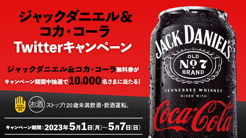 【 ジャックダニエル&コカ・コーラ 無料券 10,000名様 】
