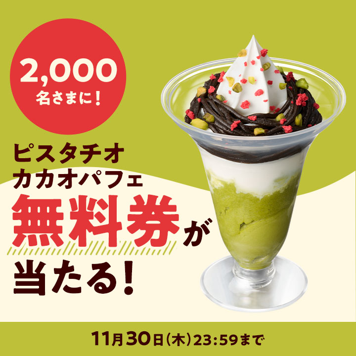 ミニストップで2023年ピスタチオカカオパフェ無料オープン懸賞キャンペーン実施中♪